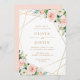 Un beau design moderne avec un cadre géométrique en faux or élégant encerclant le texte et de belles fleurs roses. Un thème parfait pour les mariages du printemps et de l'été. Le texte et les couleurs de ce modèle faire-part de mariage peuvent être personnalisés.