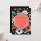 Un design floral dramatique et élégant présente un contraste saisissant entre les fleurs de teal vibrant et de corail sur un fond sombre et profond. L'arrangement pictural met en valeur de belles anémones stylisées et des bourgeons d'accent, créant un sentiment de profondeur luxuriante et artistique. Ce motif botanique sophistiqué et audacieux est parfait pour une union moderne et romantique.