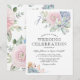 Cartes d'invitation de mariage élégantes avec un fond blanc classique, un affichage à l'aquarelle de fleurs pastel et de succulentes, et un modèle de mariage stylé facile à personnaliser.