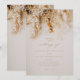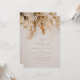 Une invitation de mariage automnal romantique et moderne, réaliste en photo, avec un bouquet floral séché neutre dans des tons de blé, d'ocre et de rouille.