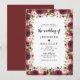 Faire-part de mariage "Elegant Bloom" présentant un fond blanc uni qui peut être changé en n'importe quelle couleur, une bordure de fleurs aquarelles rouges marsala, burgundy et rose blush, et un modèle de mariage informel.