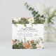 Fond vert émeraude riche et moderne avec, corail vivant et palette de couleurs rose blush et blanc ivoire est romantique et époustouflant. Le corail avec une touche de pivoines rouges, de roses blush et de clématites ivoire sont mélangés avec des fougères cueillies en forêt et du feuillage de jardin récolté. Invitation pour une Baby Shower et papeterie de fête coordonnée. Cette œuvre d'art à l'aquarelle peinte à la main a été créée par l'artiste Audrey Jeanne Roberts. Copyright.