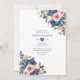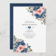 Invitation personnalisable pour une fête de couple trendy rose blush et bleu marine florale selon les spécificités de votre événement.