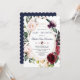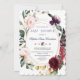 Design moderne et élégant avec une couronne de fleurs aquarelles rose, bourguignon et prune autour d'un cadre en faux or, séparateur floral ; au dos, bouquet floral sur fond bourguignon ; au dos, un bouquet floral sur fond bleu marine. Des articles assortis peuvent être trouvés dans ma collection Watercolor Flowers Baby Shower.