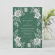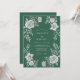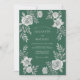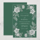 De délicates illustrations florales blanches ornent ce fond émeraude profond, évoquant une ambiance classique et romantique. Des roses luxuriantes et des lis sont parsemés de feuillage, créant un design élégant et intemporel pour une occasion spéciale. L'œuvre d'art monochrome ajoute une touche sophistiquée à l'esthétique globale.