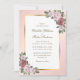 Invitation vos invités à votre élégante fête de mariage blush et or avec ces invitations de mariage florales avec des fleurs roses blush et verdure encadrant les détails mariages à l'intérieur d'un cadre doré. Éléments correspondants disponibles.