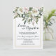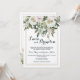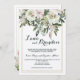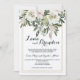 Un script classique botanique peint à la main rose, crème et vert avec parties scintillant dorée cadre mariage campagnard floral invitation.