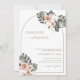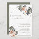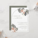 Elégant script vert sauge foncé & arche faire-part de mariage avec des feuilles tropicaux délicats et des fleurs.