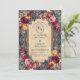 Un design de mariage vintage richement détaillé, encadré de grenades vibrantes, de fleurs fleuries et de feuillage luxuriant dans des tons de bijoux profonds. La frontière botanique ornée crée une atmosphère cossue et ancienne, idéale pour des fêtes romantiques, de jardin ou d'inspiration méditerranéenne.