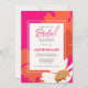 Conception florale rétro abstraite moderne rose chaud, orange et blanc. Personnalisable, texte, couleur de texte pour une invitation de mariage