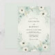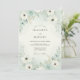 De délicates fleurs blanches et un feuillage vert doux créent une atmosphère éthérée. Ce design évoque un sentiment de romance douce et de beauté naturelle. La palette de couleurs subtiles est parfaite pour une occasion tranquille et sophistiquée.