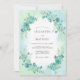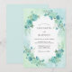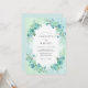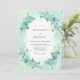 Cette conception présente un lavis de bleu aqua et de vert menthe aquarelle sur tout le fond. Des roses sarcelle douces et un feuillage délicat créent une atmosphère sereine pour une cérémonie saisonnière. Les éléments botaniques éthérés sont rendus dans un style pictural léger qui évoque un sentiment de tranquillité et de romance.