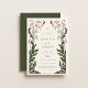 Faire-part de mariage à charpente florale Art nouveau. Couleur vert mousse et bleu palette avec arrière - plan doux beige.