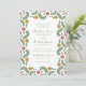 Célébrez votre jour de mariage avec un charme artistique en utilisant cette invitation de mariage florale d'art populaire fantaisiste. Le design présente les noms des mariés et les détails du mariage affichés dans un script manuscrit vert clair associé à des caractères serif classiques, créant un bel équilibre entre personnalité et élégance intemporelle. Une bordure décorative de fleurs d'art populaire illustrées entoure le design, mettant en valeur des fleurs dans des nuances de rouge, rose, jaune doré et bleu accentuées de verdure coordonnée. Le cadre floral coloré ajoute une touche distinctive inspirée des livres de contes tout en gardant la mise en page raffinée et facile à lire. Parfait pour les mariages dans le jardin, les cérémonies en plein air et les couples attirés par la papeterie artistique et fantaisiste, cette invitation offre un moyen mémorable et expressif de partager votre jour spécial avec la famille et les amis