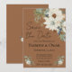 Cette belle faire-part de mariage présente des fleurs blanches, des eucalyptus et des cônes de pin, contre un arrière - plan marron rustique. "Save the Date" est écrit sur le dessus en gros caractères. Customisez les détails pour répondre à vos besoins et n'oubliez pas de changer les initiales à l'arrière de la mariée et du marié !
