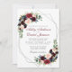 Aquarelle moderne Floral Bourgogne Marsala Bleu Argent Cadre géométrique Faire-part de mariage - Retour blanc