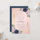 Faire-part de mariage bleu marine, blush et or sur mesure orné d'un cadre doré orné d'arrangements floraux avec des roses bleus et bleus. Éléments correspondants disponibles.