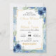 Faites de votre journée un moment inoubliable avec cet élégant faire-part de mariage floral bleu et or, parfait pour les mariages classiques, modernes ou formels. Doté de fleurs d'aquarelle dans des tons marine et or, ce modèle personnalisable est idéal pour une utilisation numérique ou imprimée. Personnalisez facilement les noms, les dates et les détails du lieu - idéal pour les mariages de jardin, les cérémonies d'automne ou les soirées romantiques.