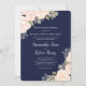 Célébrez votre amour avec cette faire-part de mariage bleu marine aux élégants accents floraux roses rousses dans l'aquarelle douce. Conçu avec un script de calligraphie gracieux et une typographie intemporelle, ce design évoque un cadre de jardin rose romantique. Parfait pour les couples à la recherche d'un style classique et classique, cet invitation incarne une élégance sophistiquée pour un mariage à la fois raffiné et inoubliable.