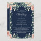 Invitation Mariage floral bleu marine rose pâle