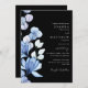 Cet élégant faire-part de mariage floral transparent bleu poussiéreux peut être personnalisé avec vos informations en typographie chic avec votre monogramme au verso. Conçu par Thisisnotme©