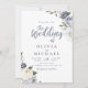 Scénario mariage bleu foncé et aquarelle botanique floral et verdure dans jaune doux, bleu poussiéreux, et gris, élégant et romantique, idéal pour mariage moderne, mariage romantique, et mariage de jardin botanique. Voir toutes les pièces correspondantes dans la collection.