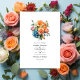 Faire-part de mariage florale bleue, rose, orange et verte. Idéal pour un thème ou un mariage de jardin. Le code QR au verso se dirige vers votre site mariage où les gens peuvent en savoir plus et rsvp