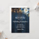 Une élégante invitation de mariage avec calligraphie élégante complétée par un magnifique bois bleu, des lampes à cordes de jardin et un bleu blanc floral avec parties scintillant d'or. Vous pouvez personnaliser cette carte avec les détails de votre Mariage.