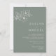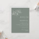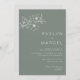 Cette invitation de mariage floral bohème vert destination est parfaite pour un mariage d'hiver. Le design présente des fleurs de pommier et des fleurs aquarelles sur fond vert.