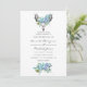 Des fleurs de saumons bleus et de menthe dans une couronne peinte à la main avec un crâne de cerf conçu pour être rapidement et facilement customisé pour votre journée spéciale.