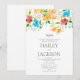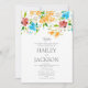 Cette invitation de mariage sur le thème botanique présente un cadre floral estival avec un soleil botanique orange, rose, bleu et menthe qui entoure vos détails de mariage. Donnez à vos invités un excellent premier aperçu de votre mariage à venir, cette carte sera un ajout fantastique à vos événements de mariage.
