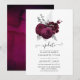 Faire-part de mariage floral argenté bordeaux et faux feuille avec des accents de prune personnalisables selon vos spécificités.