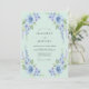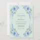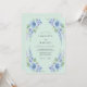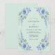 Cette conception présente une palette vert menthe doux ornée de roses bleu ciel délicates et de delphiniums lavande en cascade. L'esthétique aquarelle aérienne crée une ambiance sereine et romantique parfaite pour un événement saisonnier. Des éléments botaniques luxuriants et un feuillage verdoyant se regroupent le long des coins pour une sensation fraîche et naturelle.