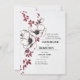 Une invitation de mariage sophistiquée et intemporelle avec de grandes fleurs dessinées à la main avec des accents rouges délicats et un petit papillon.