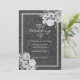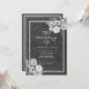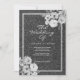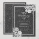 Une calligraphie manuscrite blanche classique traditionnelle avec des paillettes noires élégantes et chic, des fleurs aquarelles peintes à la main blanches et grises avec des bordures florales de paillettes argentées élégantes pour les invitations de mariage.