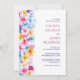 Célébrez l'amour en pleine floraison avec cette faire-part de mariage florale vibrante. Ornée de fleurs rose, jaune, bleue et violette, cette magnifique invitation est parfaite pour inviter amis et proches à assister ensemble au joyeux début de votre voyage de toute une vie. Élégant, gai et plein de coeur, il donne le ton parfait pour une célébration à retenir. Le texte personnalisable vous permet d’ajouter sans effort les noms de la mariée et du marié, la date du mariage et les détails nécessaires de votre célébration. Une variété de types de papier et de styles d'angle sont disponibles pour vos invitations uniques, ainsi que l'option de téléchargement si vous préférez un format numérique.