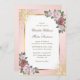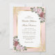 Invitation vos invités à votre élégante fête de mariage blush et or avec ces invitations de mariage florales avec des fleurs roses et verdure qui encadrent les détails mariages à l'intérieur d'un cadre doré orné de confettis dorés. Éléments correspondants disponibles.
