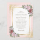 Invitation vos invités à votre mariage rose vif avec ces élégantes invitations à mariage florales avec des fleurs roses et de la verdure encadrant les détails mariages à l'intérieur d'un cadre doré orné de confettis dorés. Éléments correspondants disponibles.