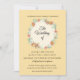 Pêche douce, fleurs de corail et invitation feuillage vert menthe avec un arrière - plan jaune au beurre doré et doux. Main peinte à l'aquarelle acrylique sur toile par l'artiste Audrey Jeanne Roberts, cette couronne de marguerites blanches et de fleurs sauvages coralliennes aux papillons botaniques confèrent un style moderne, élégant et sauvage, parfait pour un mariage de style ferme, botanique ou de style jardin extérieur.Droit d'auteur .