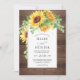 Avec son charme rustique, ce design de faire-part de mariage distinctif a des tournesols en cascade le long des bords supérieur et latéral. Une riche texture en bois dans l'arrière - plan ajoute à l'attrait simple. La disposition et le libellé du texte utilisé dans cette conception ont une décontractée convivialité en utilisant les prénoms de la mariée et du marié. Personnalisez ce texte avec vos détails. Ce design est un choix merveilleux pour les mariages qui se tiennent dans les granges, les lieux extérieurs, les caves à vin ou d'autres lieux rustiques ou ruraux.