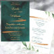 Cette invitation de mariage est parfaite pour un mariage en plein air simple et élégant. Le design floral présente une peinture à l'aquarelle vert Deep Sea et des feuilles à l'aquarelle ainsi que du texte de couleur or. Économisez du papier en incluant les détails au verso de l'invitation de mariage au lieu de les mettre sur une carte de supplément séparée.