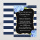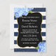 Cartes d'invitation de mariage floral d'hydrange bleue rayée marine.