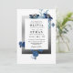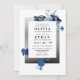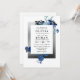 Invitation Mariage floral d'ivoire élégant bleu marine et arg