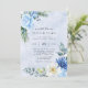 Le design présente une impression colorée d'éléments floraux dans les tons bleu poussiéreux et bleu marine sur des feuilles verdoyants et des fleurs de roses de pivoines. sur une arrière - plan d'aquarelle bleu clair.. Idéal pour vos célébrations mariages !