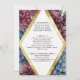Immergez votre mariage dans une sophistication intemporelle grâce à notre collection "Enchanted Elegance". Ce design exquis présente une aquarelle peinte de bleu marine luxuriant et de riches pivoines bordeaux, capturant le romantisme et la grâce de votre journée spéciale. Au coeur du design, une forme centrale en diamant, dessinée dans une feuille d'or imitation, ajoute une touche de charme opulente, complétant parfaitement l'art floral. Disponible dans toute une gamme de papeterie mariage, de matériel de fête et de décoration, cette collection transforme chaque détail en un reflet de votre histoire d'amour et de célébration.