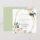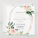 Cette invitation de mariage florale élégante géométrique de verdure & d'or est parfaite pour un mariage rustique. Le design présente de jolies roses peintes à la main en blanc, rose et fuchsia et une touche de verdure, ornant des cadres géométriques dorés, inspirant une beauté artistique.