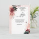 Cette invitation présente un élégant design de fleurs rouges et noires sur les coins opposés avec une plancha rose pâle et un centre crème. L'écriture est une jolie police de script, et il y a beaucoup de champs à customiser au besoin.