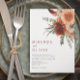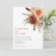 Donnez le ton pour votre mariage élégant avec cette invitation à la couleur de l'eau de terre cuite fleurie dans les tons de terre cuite et de rouille. Personnalisez avec tous vos détails importants tels que le nom de la mariée et du marié, la date du mariage et l'emplacement. L'envers est coordonné en terre cuite