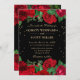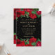 Elégant Rose d'aquarelle rouge avec parties scintillant or et diamants sur arrière - plan noir
