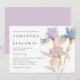 Cette élégante invitation de mariage est parfaite pour les mariages de printemps et d'été. Ce design présente des iris aquarelles dans des tons de lilas et de bleu pervenche. Des touches subtiles d'or ajoutent un élément scintillant et magique.